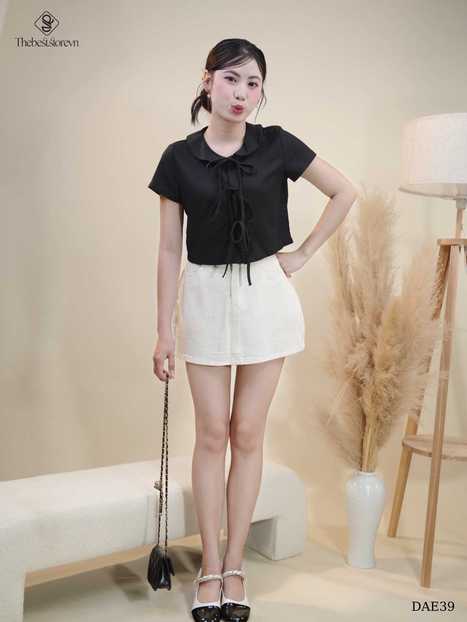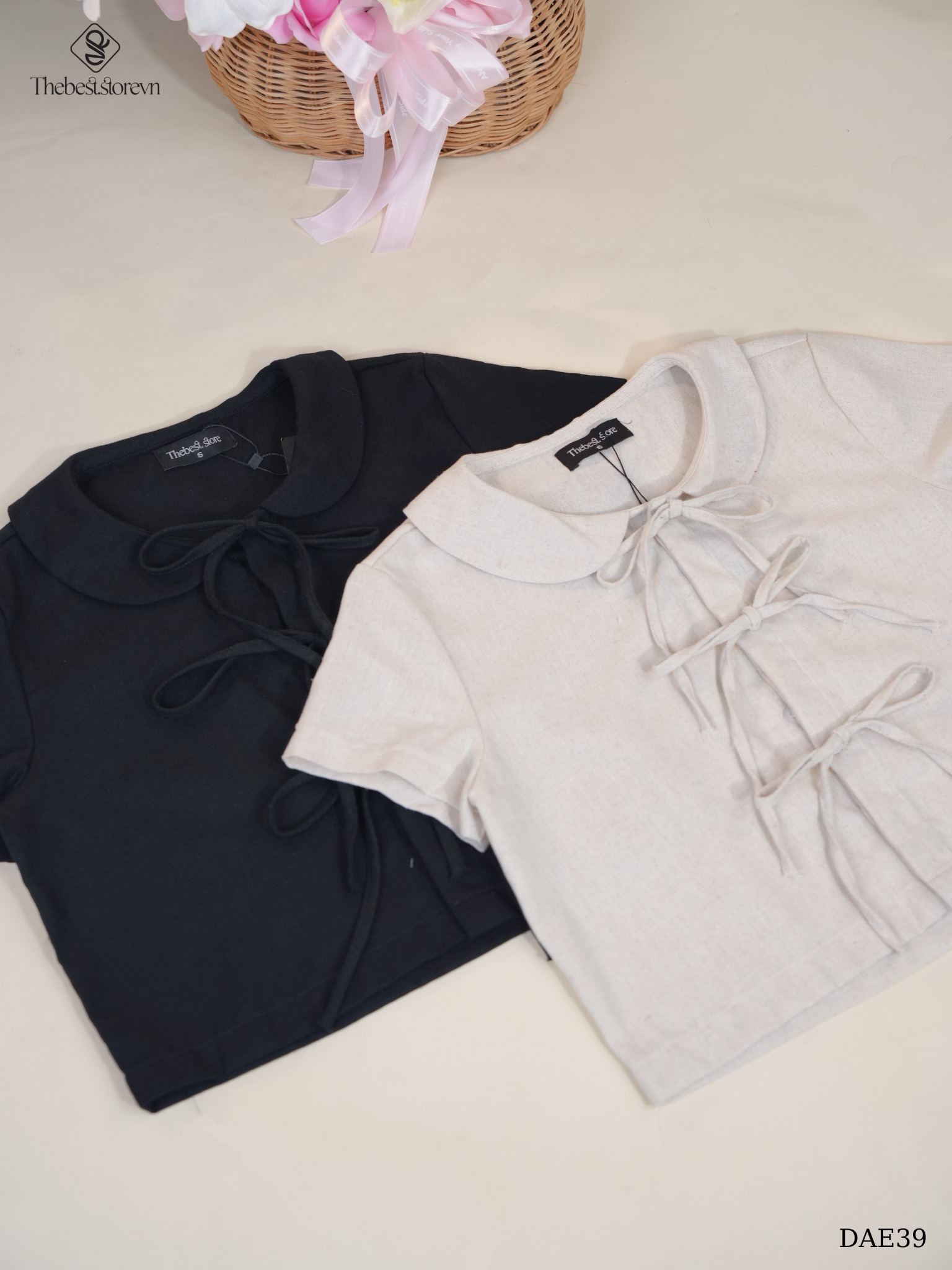 THÔNG TIN SẢN PHẨM: ✔Tên sản phẩm: Áo linen cổ sen 3 nơ DAE39 ✔Màu sắc: Đen, Nude ✔Size: S/M Thông số sản phẩm có thể chêch lệch 2-3cm...