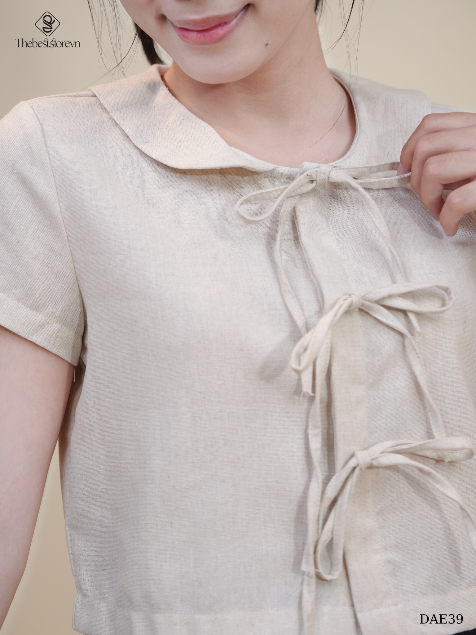 ✔Tên sản phẩm: Áo linen cổ sen 3 nơ DAE39