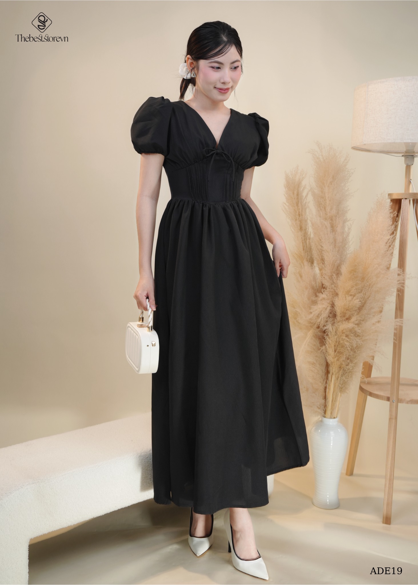Đầm dài cổ V li eo ADE19 sang trọng, nữ tính