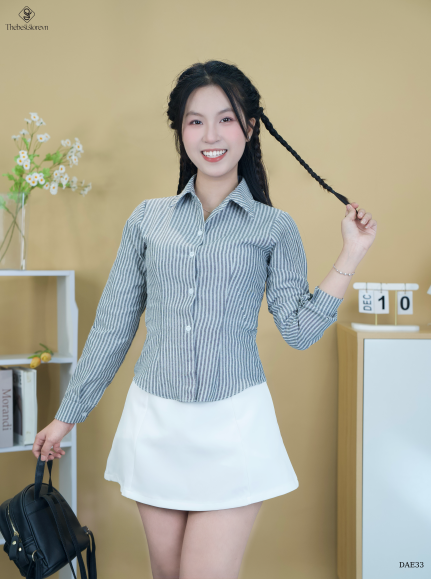 Sơ mi sọc khoen lưng